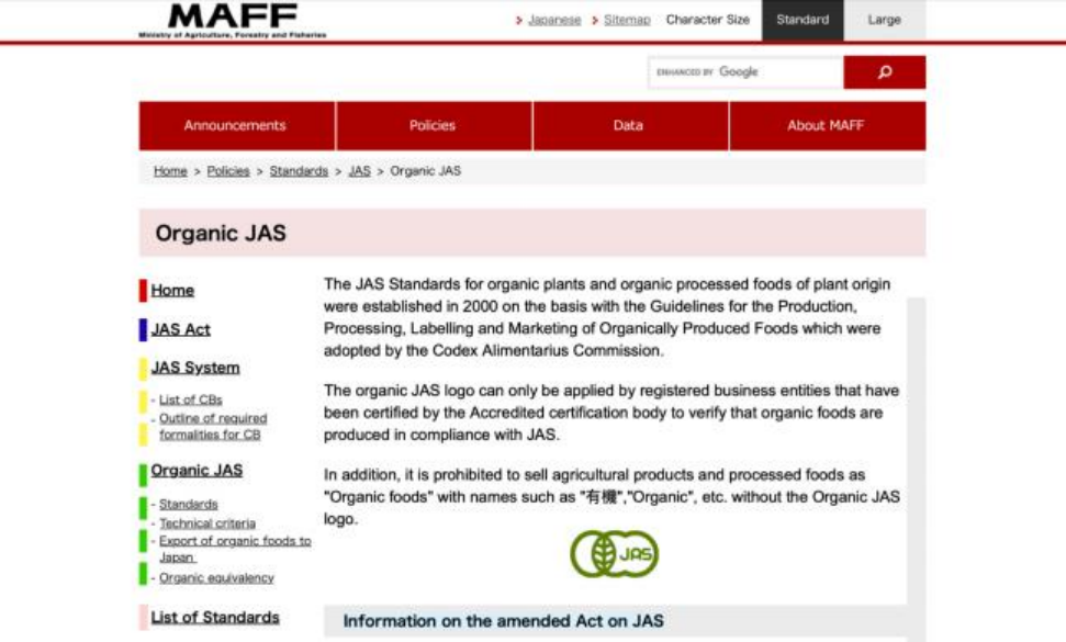 - 接受日本农林水产省的定期监督与评估,严格按照 JAS 标准及相关法规开展认证工作。