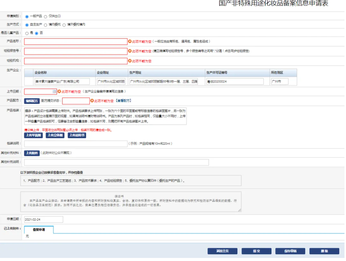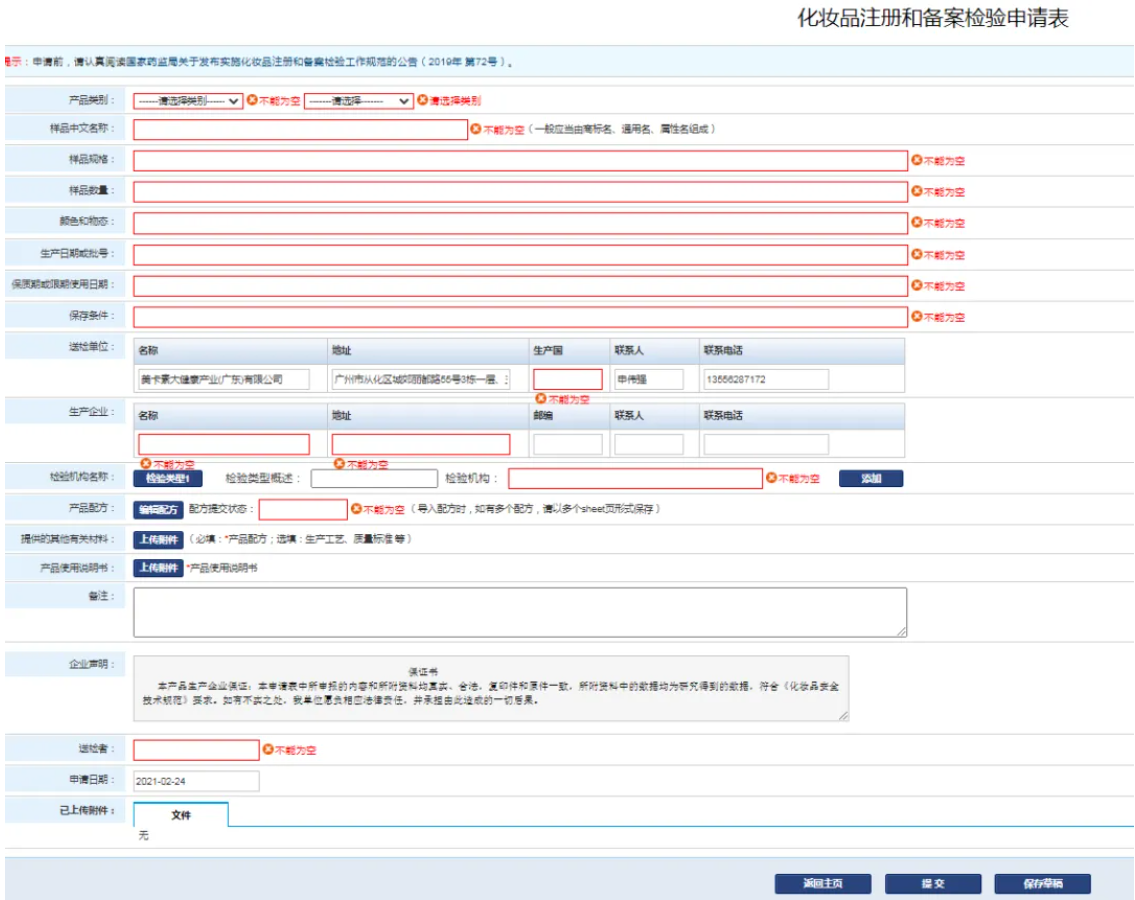 2.3 新产品检验:化妆品检验 — 化妆品检验申请;